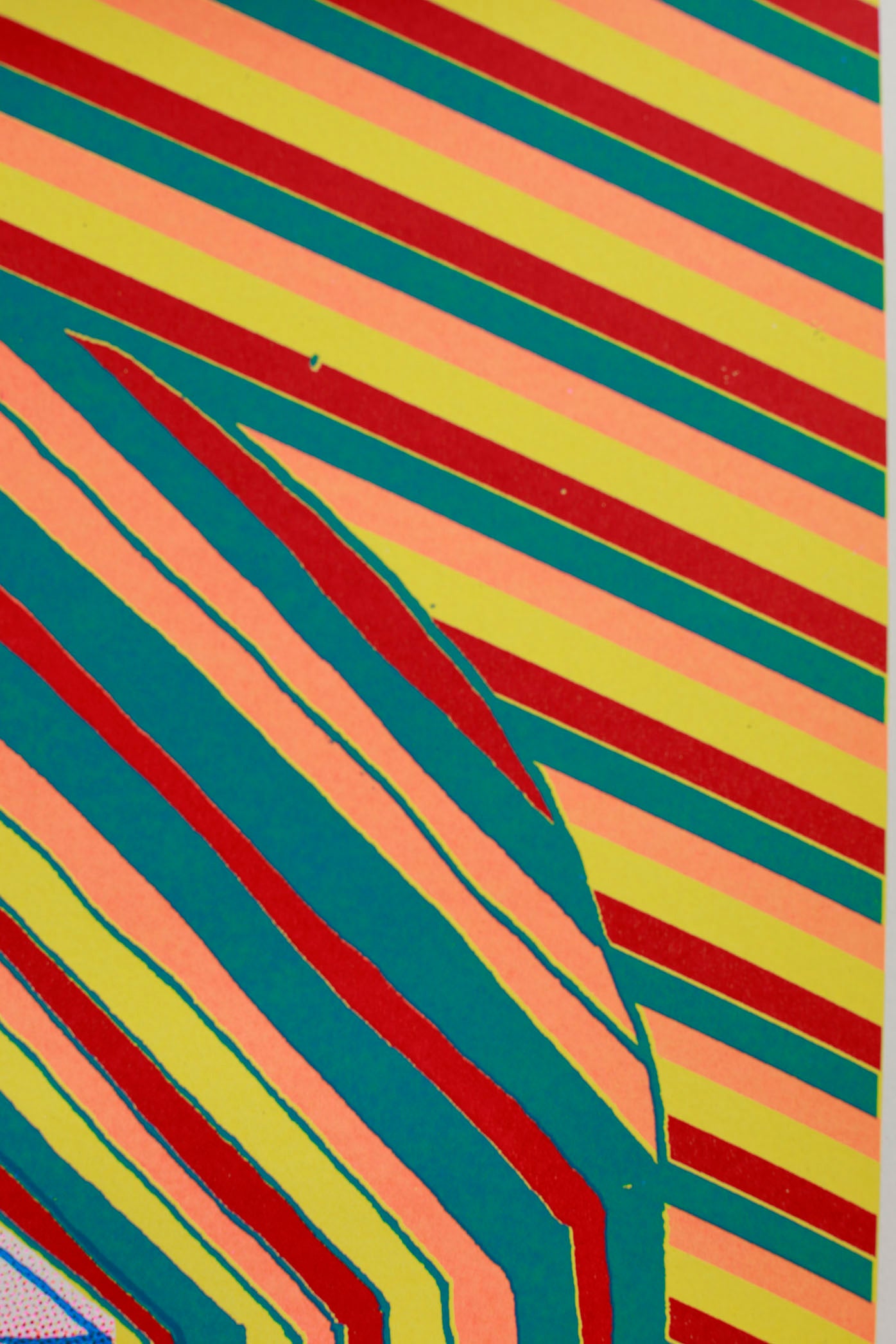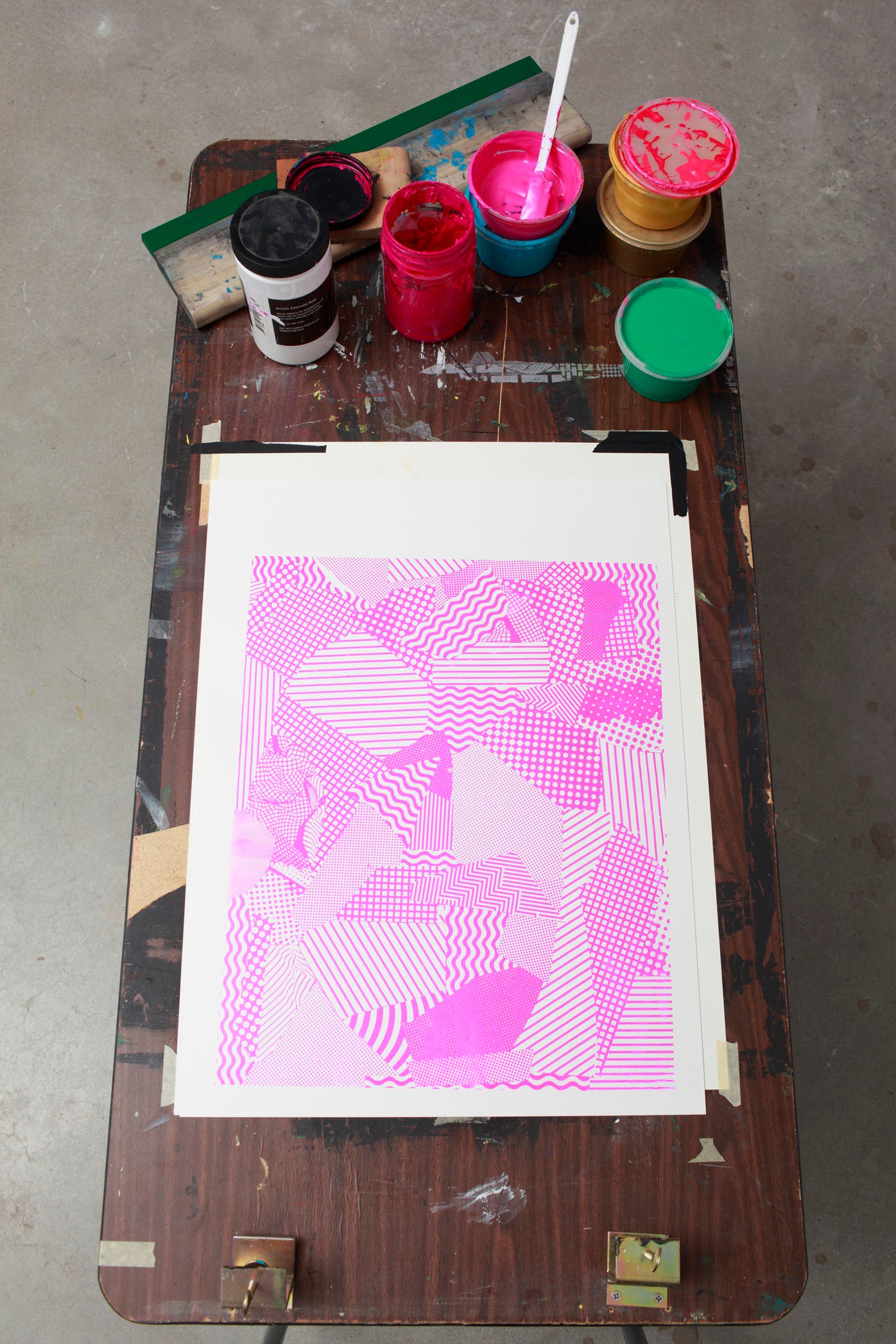 Screen printing is a utilitarian production technique. It exists as an engine of mass production. Defined by repetition, consistency and physicality, the printing method originally served the arena of the mundane: signage, t-shirts, grocery bags, scratch-and-sniff stickers.