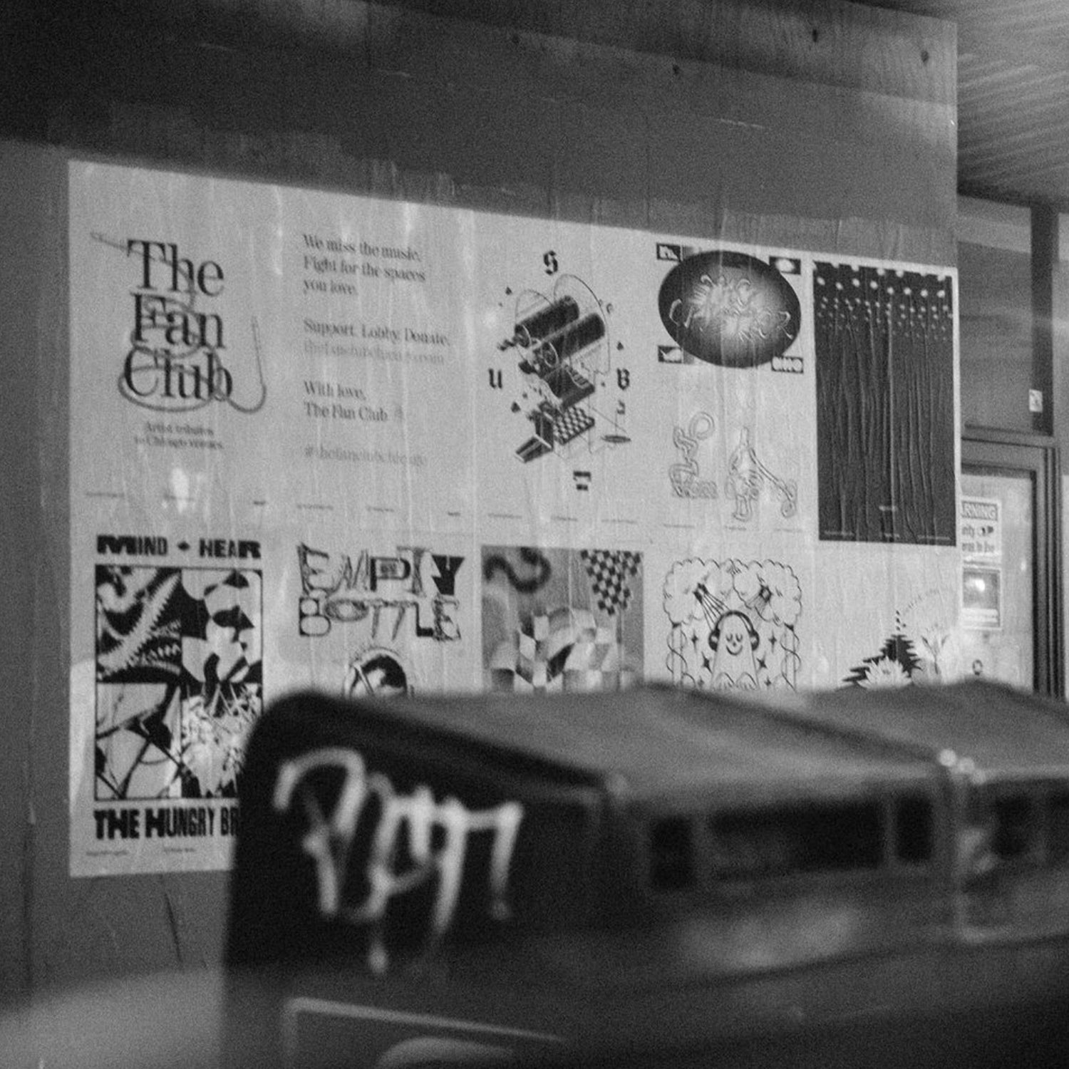 Through our social-distance friendly, wheat pasted exhibition of these works, merchandise sales and online calls to action—The Fan Club fundraiser successfully raised over $2,500 for CIVL's initiative to support these 8 local venues and many more close to our hearts.