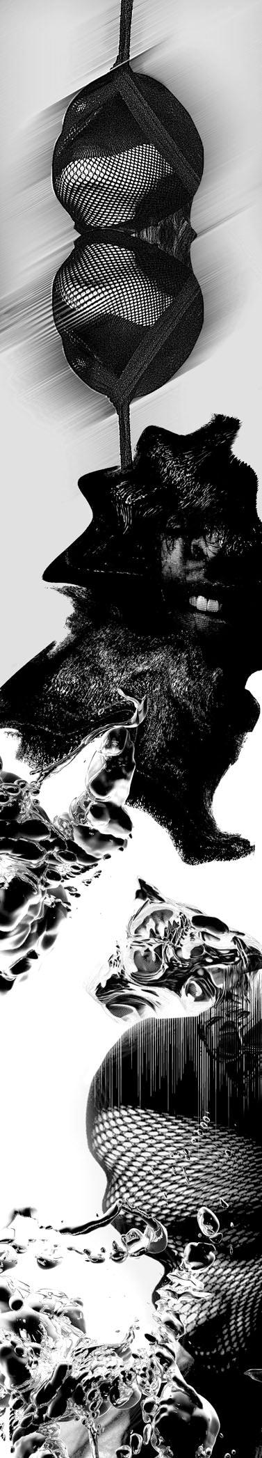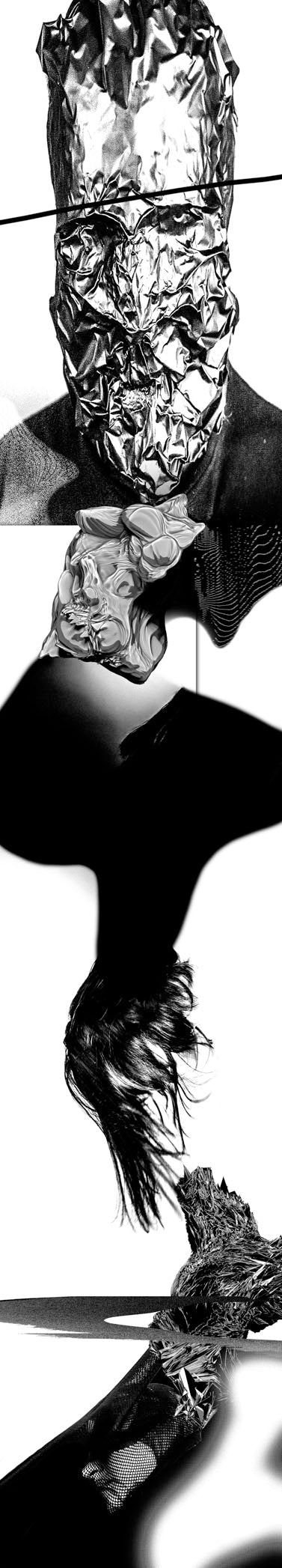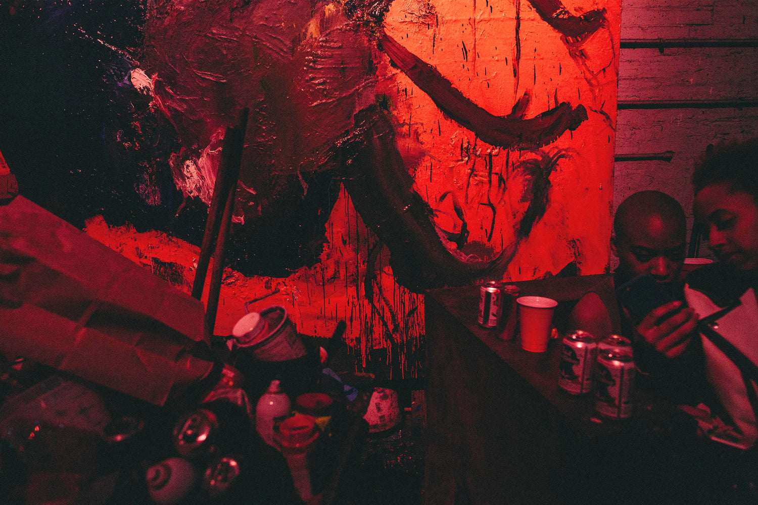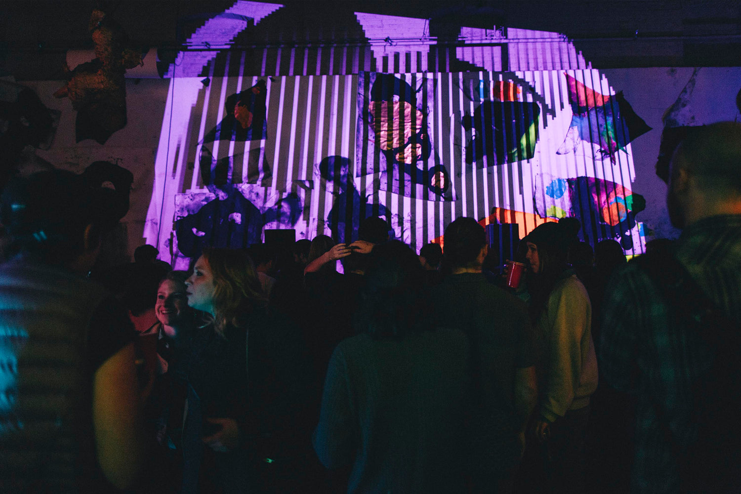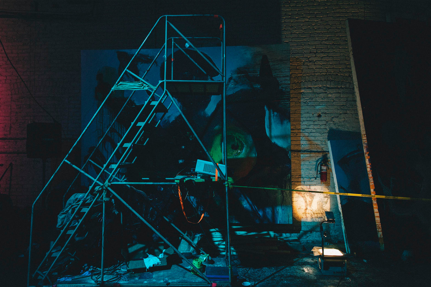 Public Works and parent company Someoddpilot play artist and sponsor roles simultaneously, bringing together an array of digital video works and giant, large scale printed banners into a daunting installation that leans heavily into analog and pre-digital effects, created by the design and AV team at Someoddpilot. The work, one installation amongs dozens elaborately constructed across the vast warehouse loft space, deconstructs and reconstructs identity, pulling at the boundaries of what is real, imagined and manipulated.