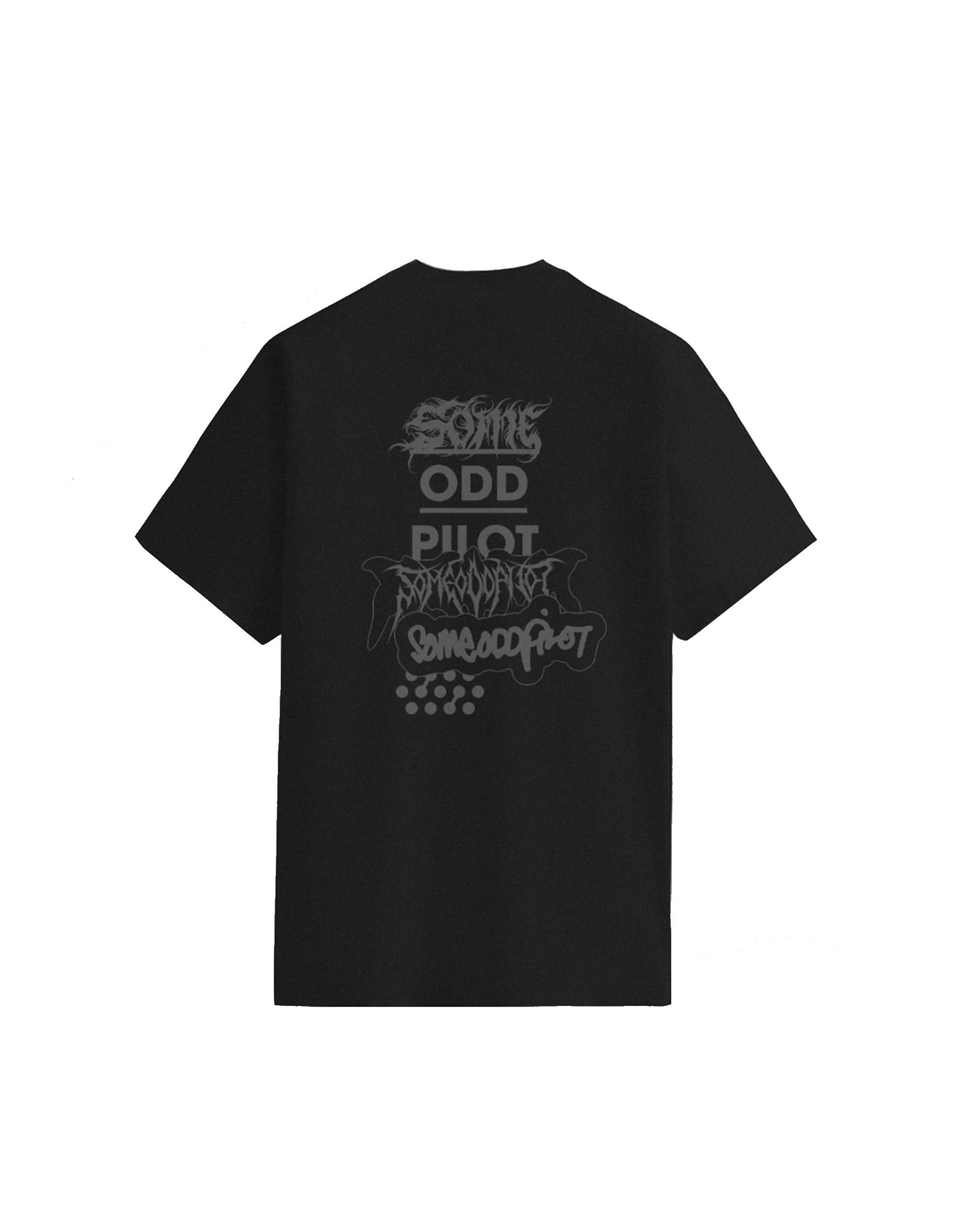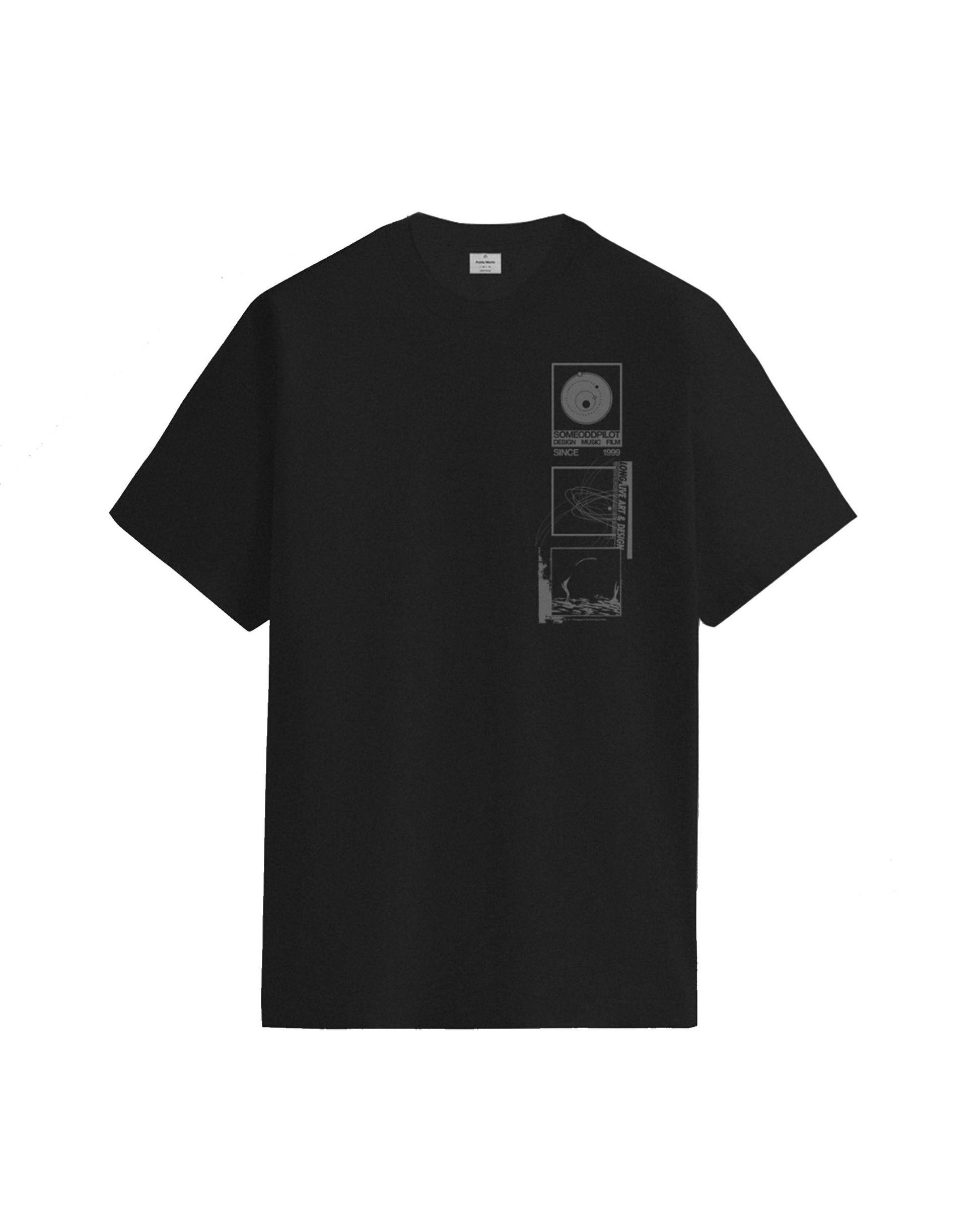 Black, heavy cotton unisex t-shirt with 1 color reflective front and back graphic.