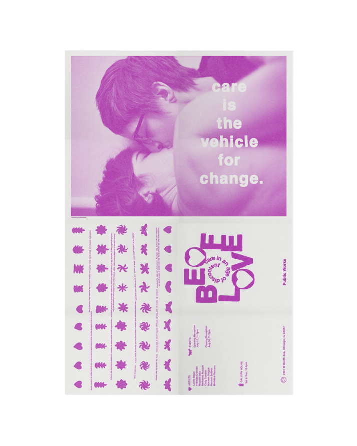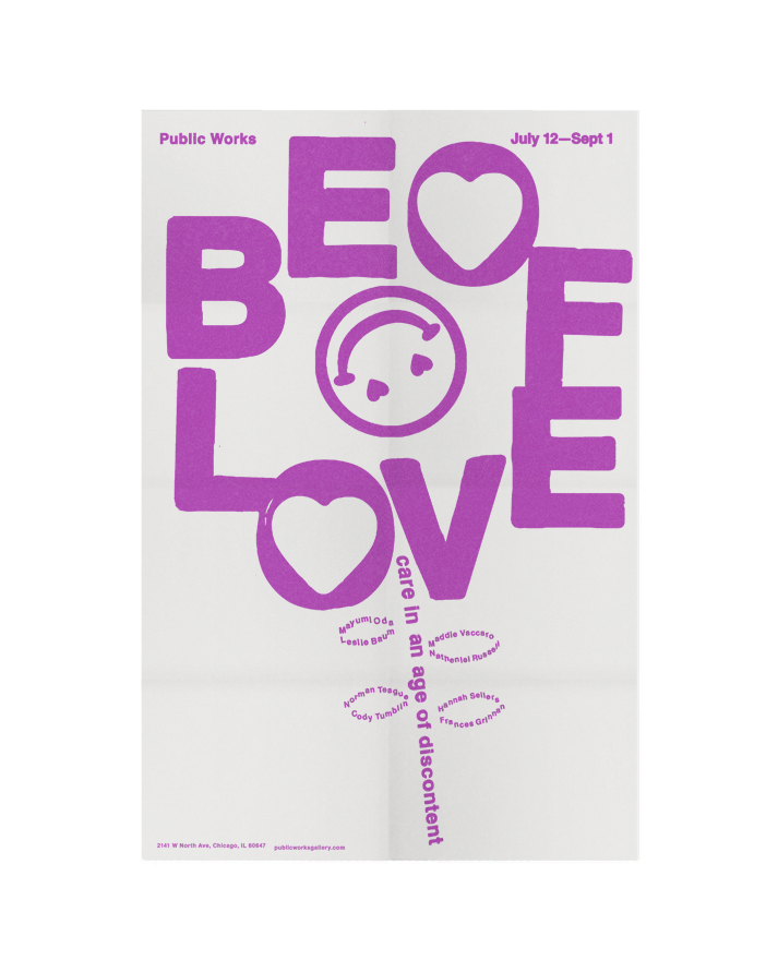 Newsprint, 1-color poster for Be of Love group exhibition.