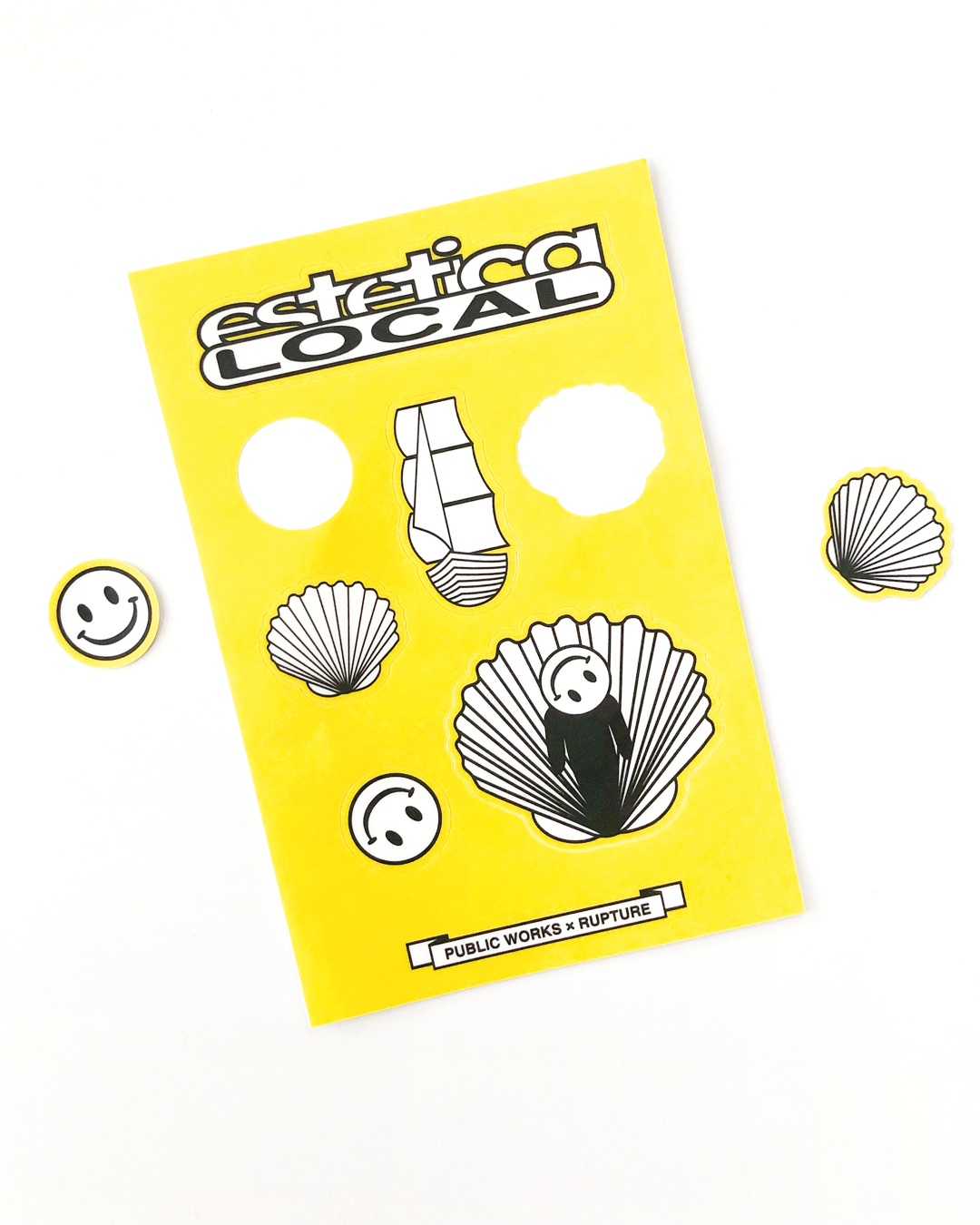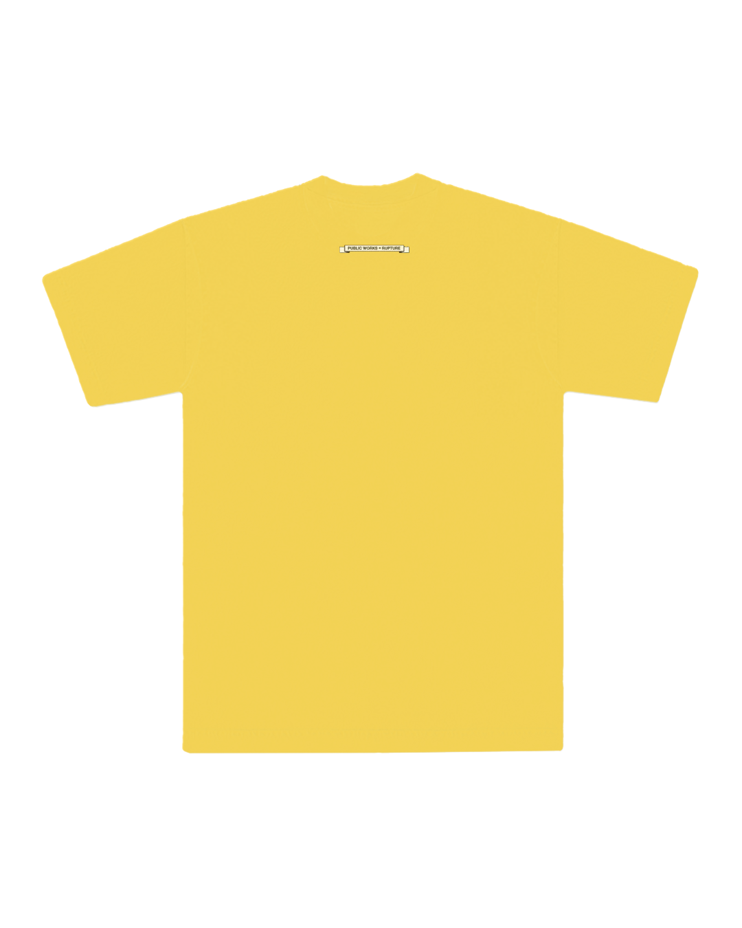 Classic fit unisex tee with front and back 2 color screen prints. Public Works X Rupture sticker pack included with purchase.