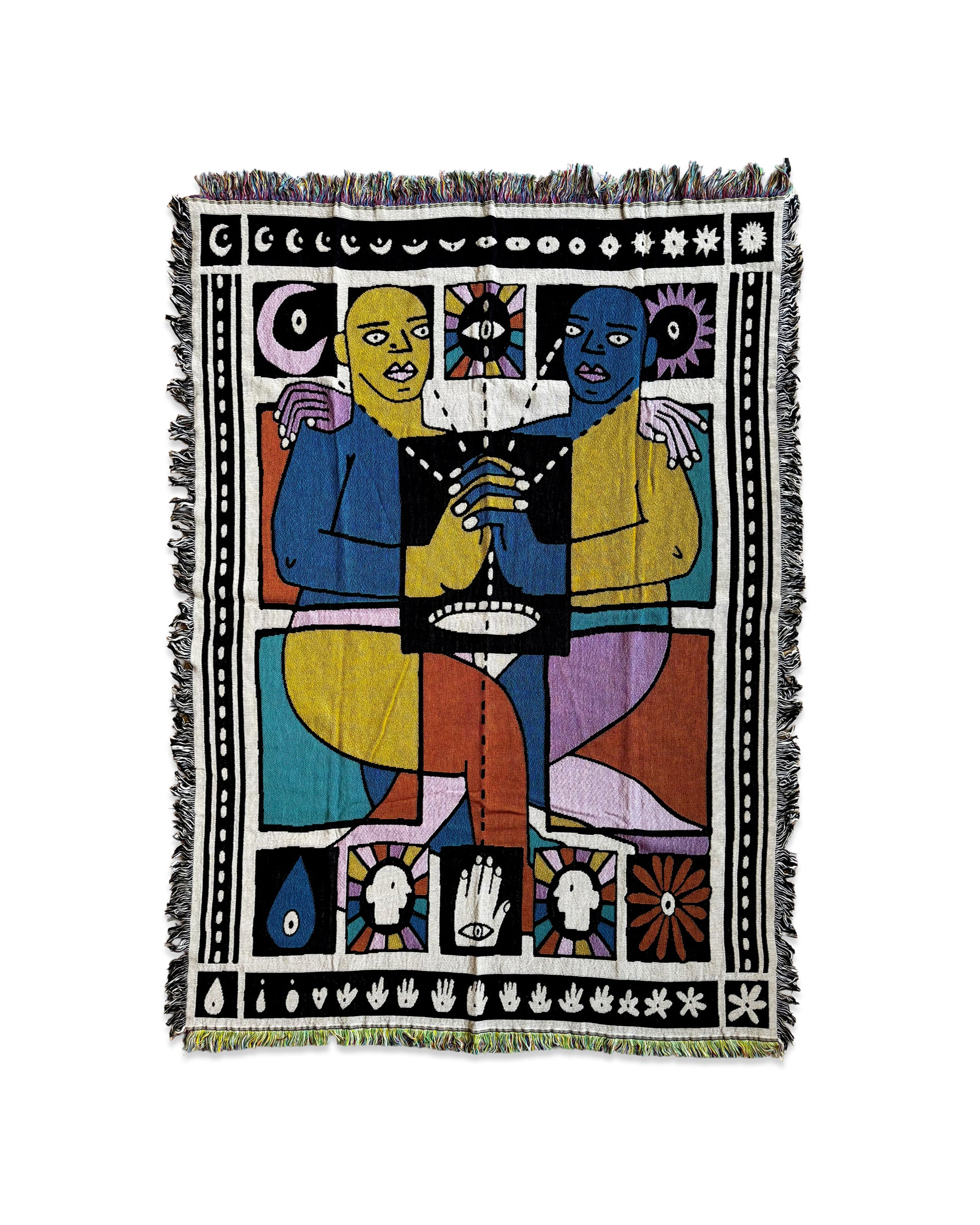 Handmade in USA. Multi-color reversible 100% cotton knit throw blanket. Graphic designed by Someoddpilot.