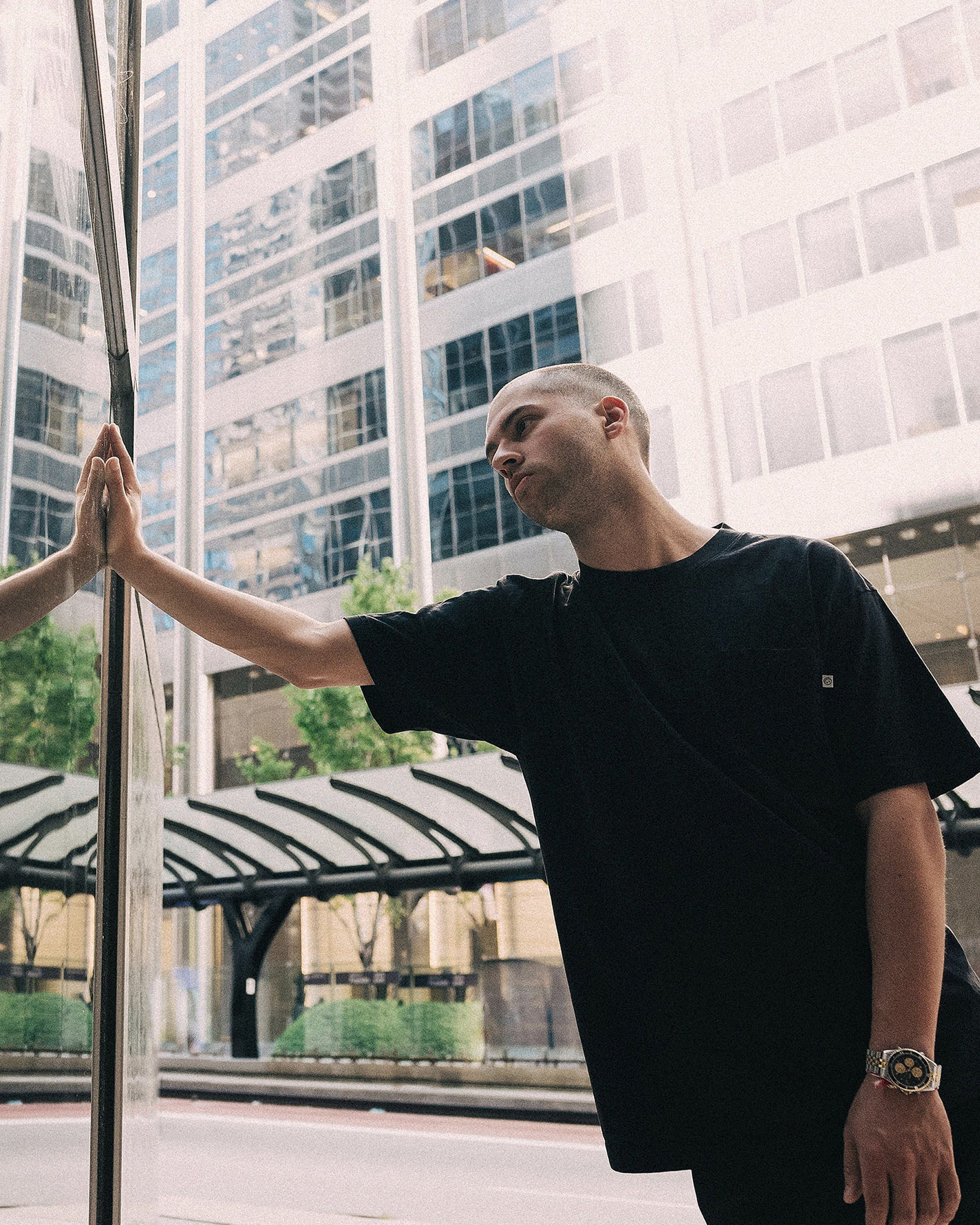 Heavy cotton t-shirt with a classic left breast pocket. Features a 3M™ reflective tag with smiley graphic printed in black.