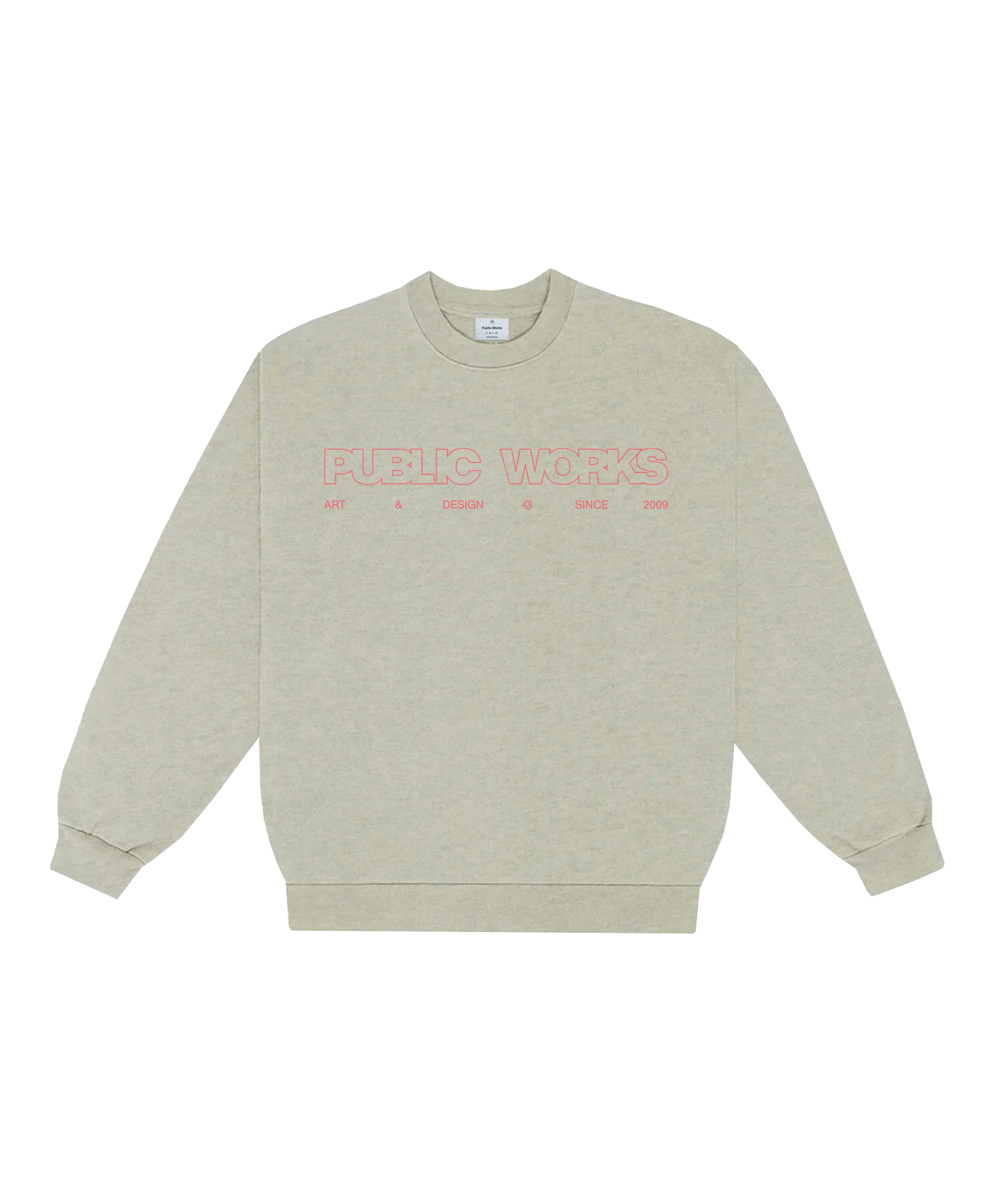 Heather oatmeal crewneck sweatshirt with one color front and back printing.
