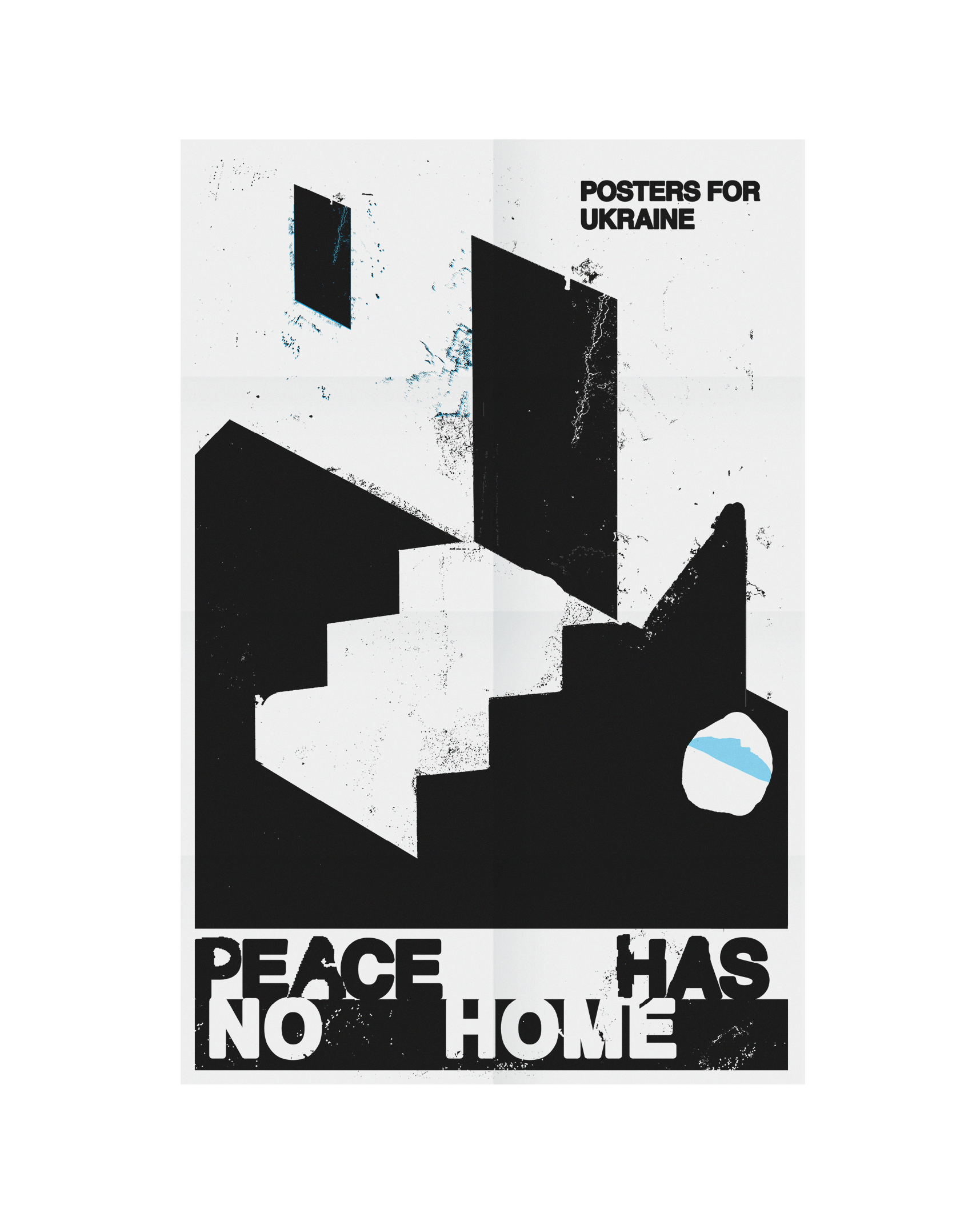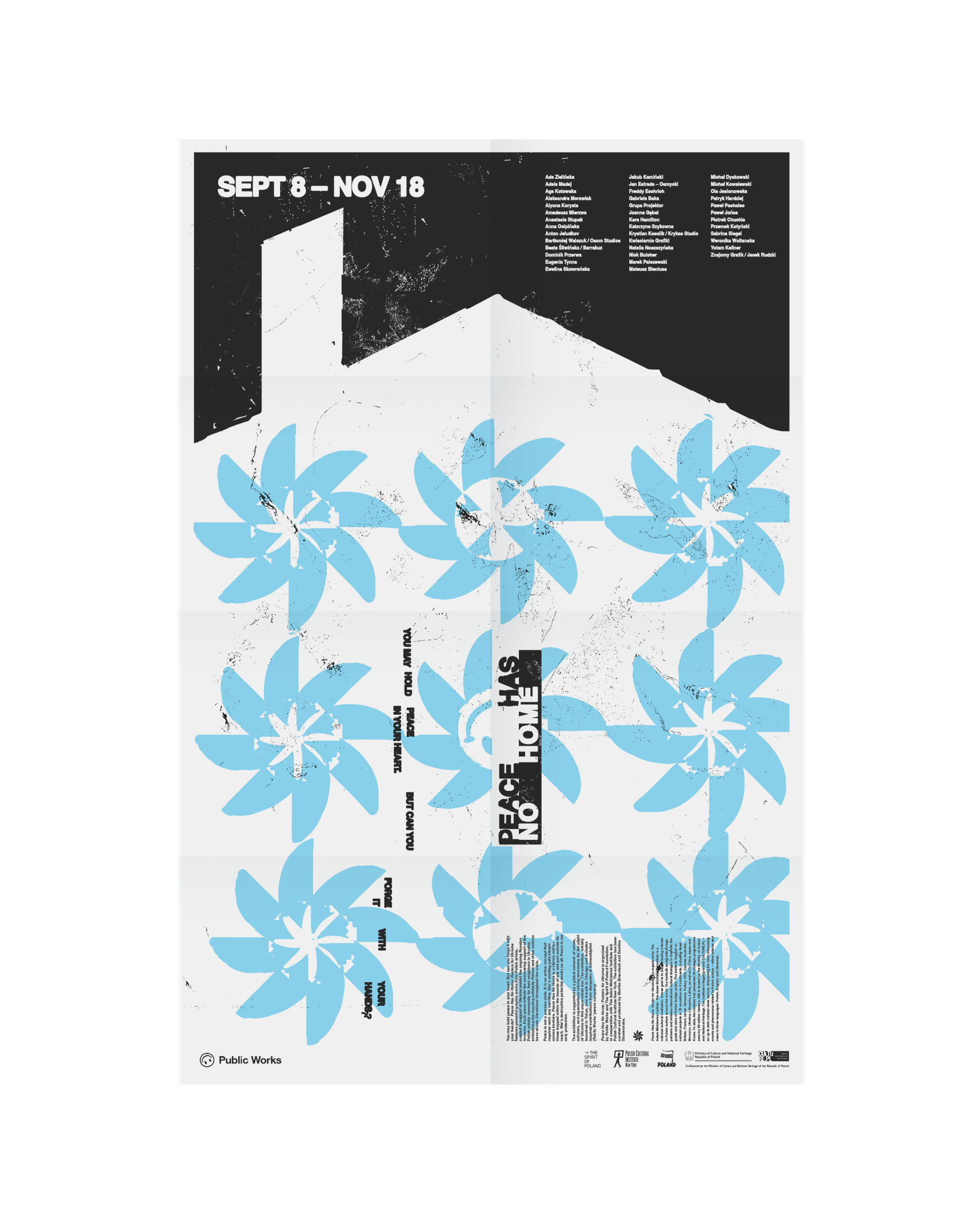 Newsprint, 2-color poster for Peace Has No Home group exhibition.