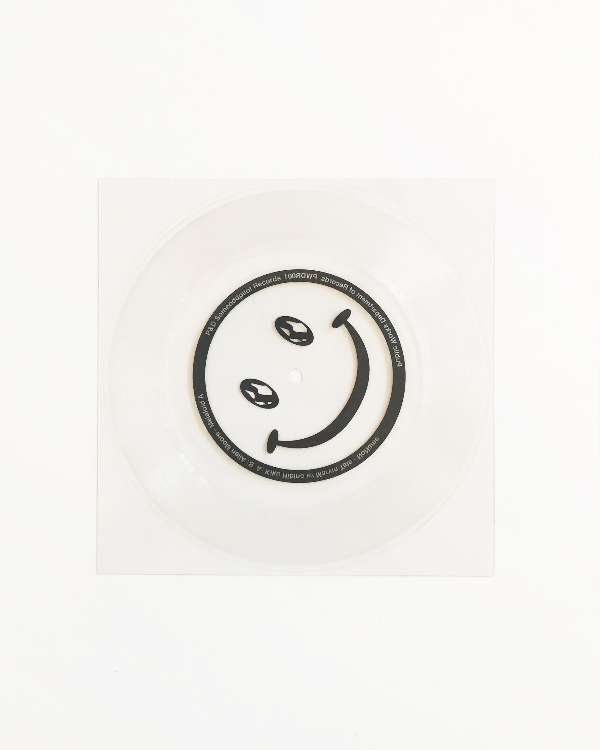 Exhibition catalog and flexi record featuring tracks by Kikù Hibano and Allen Moore.