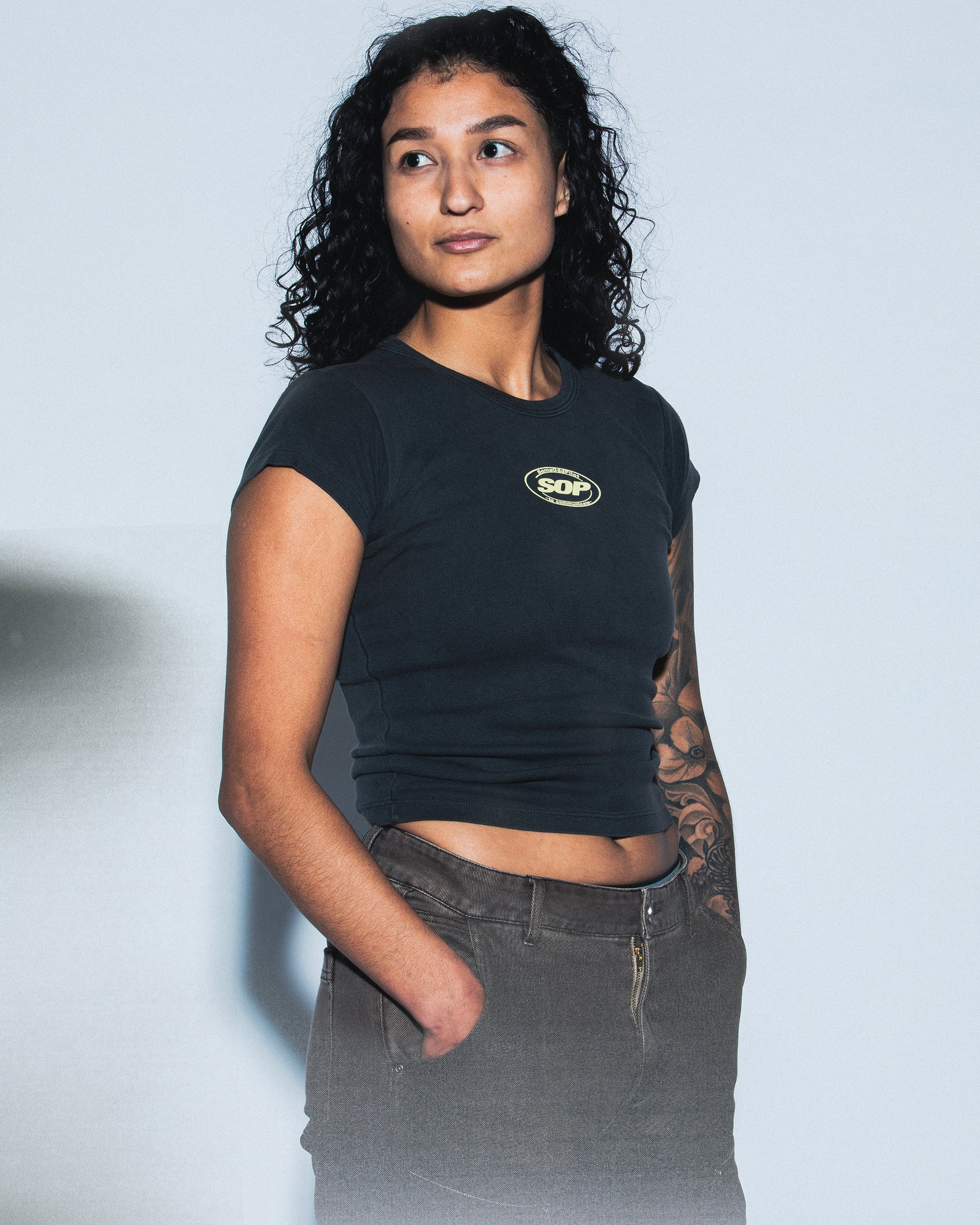 100% USA-grown 1x1 combed cotton. Shrink free. Shirt assembled in South Central, Los Angeles. Designed, printed in Chicago.